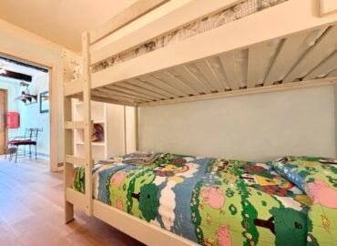 With a double bedroom, a bedroom with a bunk bed, a bright living room, a well-equipped kitchen and a modern bathroom, it is perfect for small families or couples.